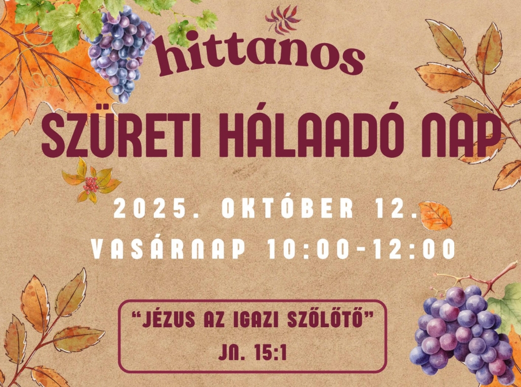 Szeretettel hívunk és várunk Benneteket és kedves családjaitokat őszi hittanos hálaünnepünkre, amelyet a szürethez kapcsolódva szervezünk meg.