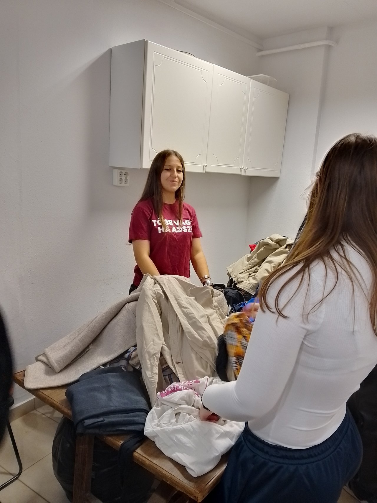 A fiúk a kerti munkákban jeleskedtek – füvet nyírtak, gyomláltak, a lehullott leveleket gyűjtötték össze –, míg a lányok szorgalmas kézzel válogatták az adományként érkezett ruhákat, hogy azok később méltó helyre kerülhessenek.