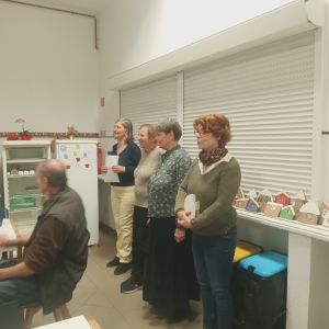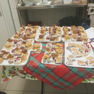 A sok finom házi készítésű sütemény mellé mindenki választhatott magának egy papírból készült házikót, melynek ajtaját megnyitva egy igei üzenettel találkozhatott,  ezáltal Jézussal is. Köszönjük az igeszolgálatot Kiss-Sepsi Krisztina kórházlelkésznek, a házikók elkészítését Békésiné Torma Juditnak, a finom házi sütiket Helyes Sacinak és Tóth-Zsiga Ilikének, Faragó Noéminek, Kocsis Juditnak az önzetlen szolgálatát, a szervezést, a finomságokat !